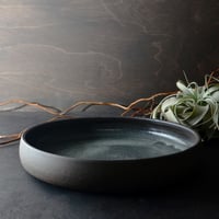 wheel thrown, unglazed exterior, with interior glazed in smokey gray. each piece as its own unique markings.